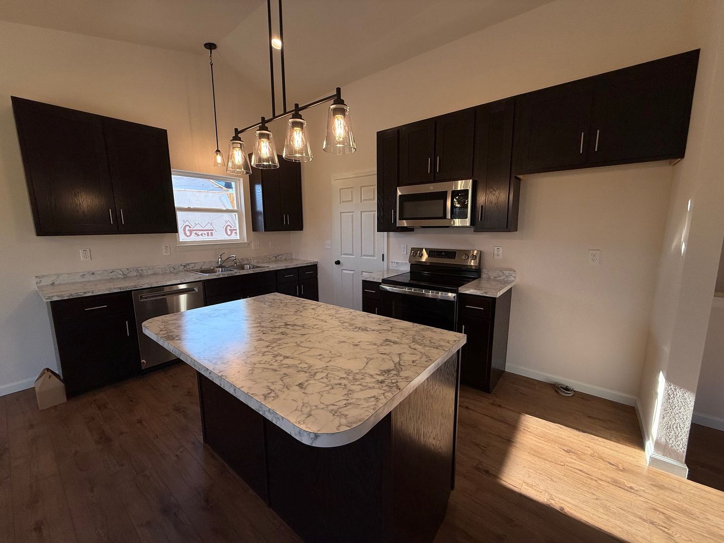 Be the first to live in this brand-new construction ranch home located in the desirable Twin Pines Subdivision! This rare rental opportunity offers 3 bedrooms and 2 full bathrooms with a bright, open floor plan designed for modern living. The main living area features vaulted ceilings and luxury vinyl plank flooring, creating a spacious and stylish feel. The kitchen flows seamlessly into the living and dining areas—perfect for everyday living and entertaining. Bedrooms are comfortably finished with plush carpet, and main-floor laundry adds everyday convenience. Additional highlights include an unfinished walk-out basement offering ample storage, a private deck for outdoor enjoyment, and a 2-car garage. This home has just been completed and is move-in ready immediately. Rare opportunity to rent a brand-new home! No pets. Schedule your showing today and enjoy everything this new construction home has to offer.