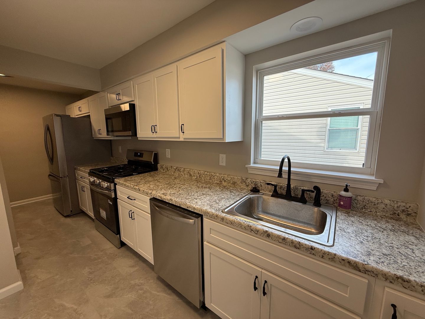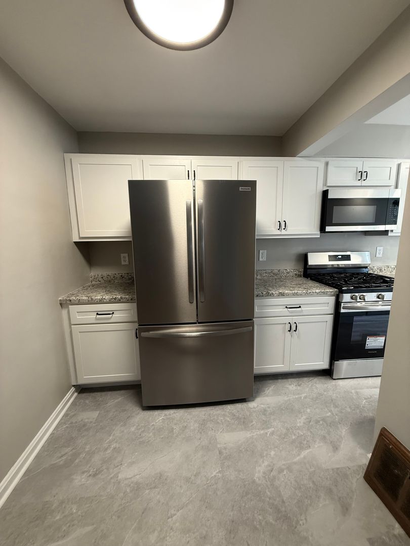 Step inside to find a warm and welcoming interior featuring fresh paint, updated windows, and hardwood floors throughout. The updated kitchen shines with new flooring, custom cabinetry, stainless steel appliances, and modern countertops, making meal prep a joy. The bathroom has also been tastefully updated for comfort and style.
